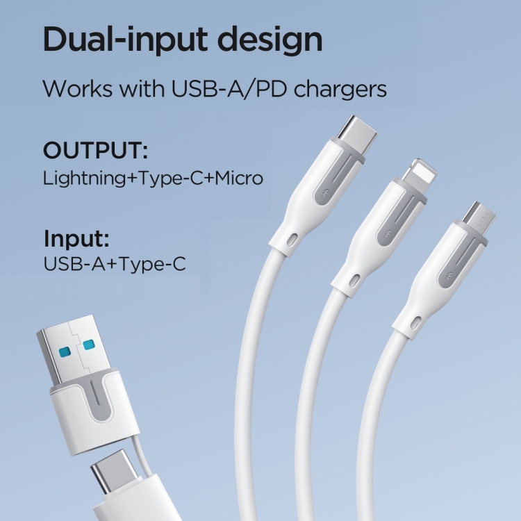Cáp sạc Joyroom S-2T3018A15 Ice-Crystal Series 3.5A USB-A+Type-C to Lightning+Type-C+Micro 5-in-1 Charging Cable 1.2m-Balck