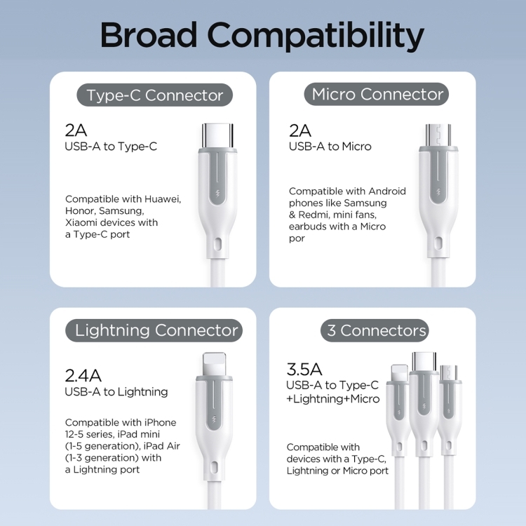 - Loại đầu nối: USB-A+Type-C to Lightning+Type-C+Micro
