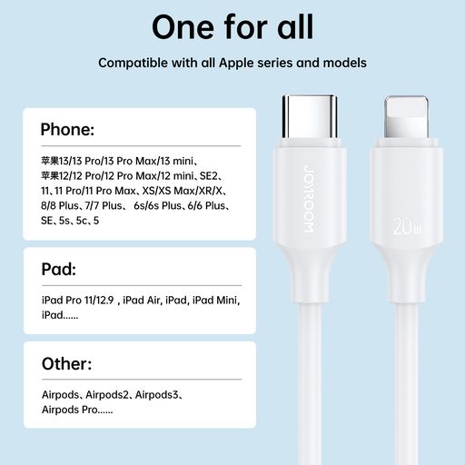Joyroom CL020A9 được sản xuất đạt chuẩn Lightning MFI (tương thích chuẩn Apple), hỗ trợ đầy đủ các đời iPhone từ iPhone 8 trở lên, bao gồm: