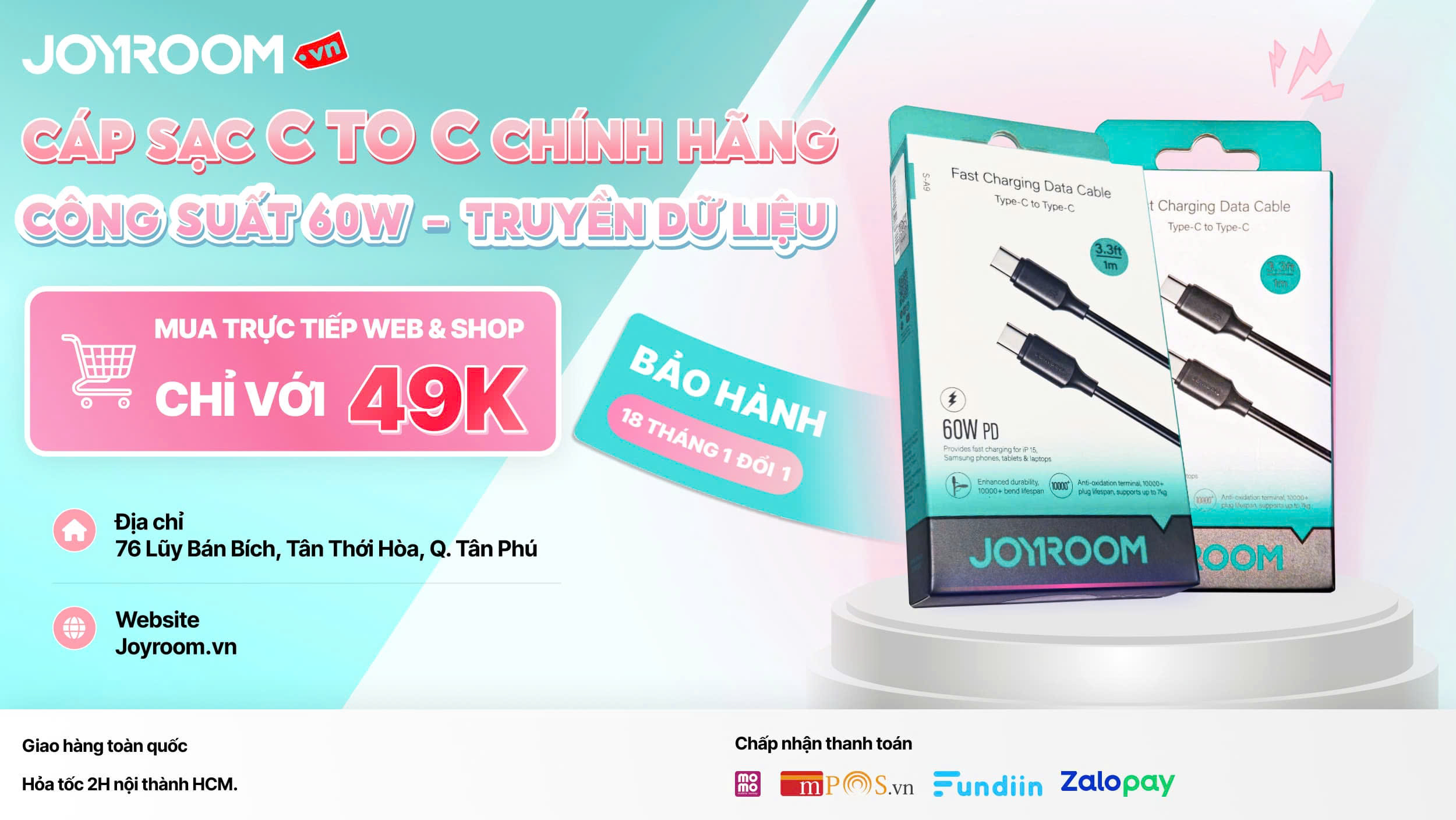 Bạn đang tìm kiếm một chiếc cáp sạc vừa bền bỉ, vừa sạc nhanh, vừa truyền dữ liệu ổn định? ✨ Đừng bỏ qua chương trình khuyến mãi “nóng hổi” của Joyroom: Cáp sạc Joyroom Type-C to Type-C 60W chính hãng chỉ với 49.000đ , kèm bảo hành 18 tháng 1 đổi 1 !