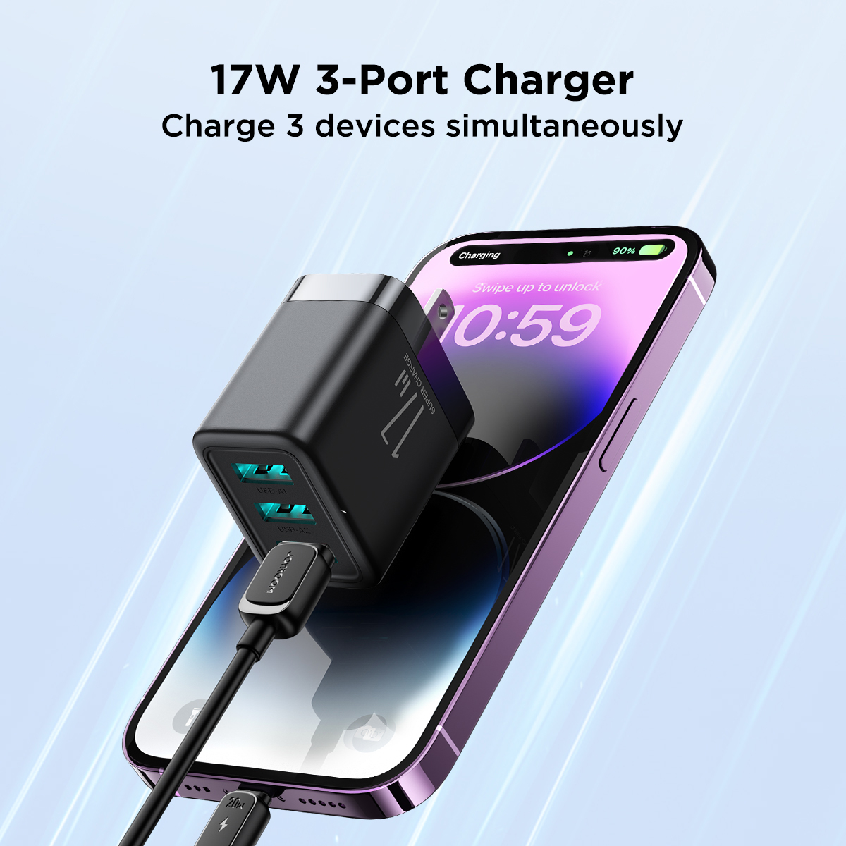 Joyroom TCN02 là một cái cục sạc thực sự tiện lợi và mạnh mẽ. Với sức mạnh 17W, nó đảm bảo sạc nhanh và hiệu quả cho các thiết bị di động như iPhone và Samsung. Với 3 cổng USB, bạn có thể sạc nhiều thiết bị cùng một lúc mà không cần phải chờ đợi lâu.