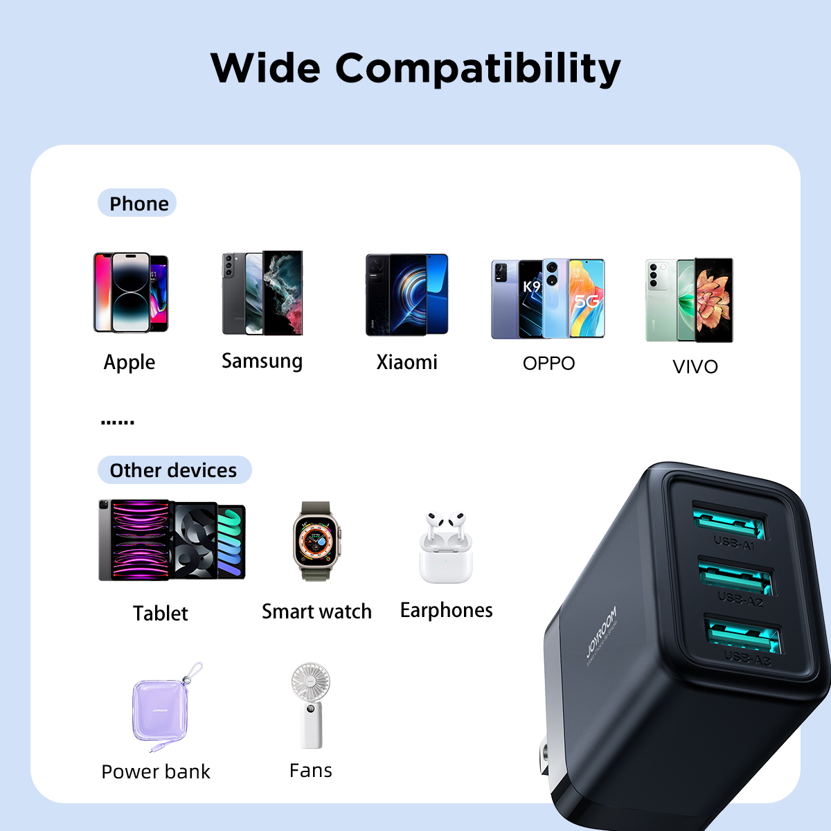 Cóc sạc nhanh Joyroom TCN02 3 cổng USB 17W dùng cho điện thoại, sạc nhiều thiết bị di động cùng lúc