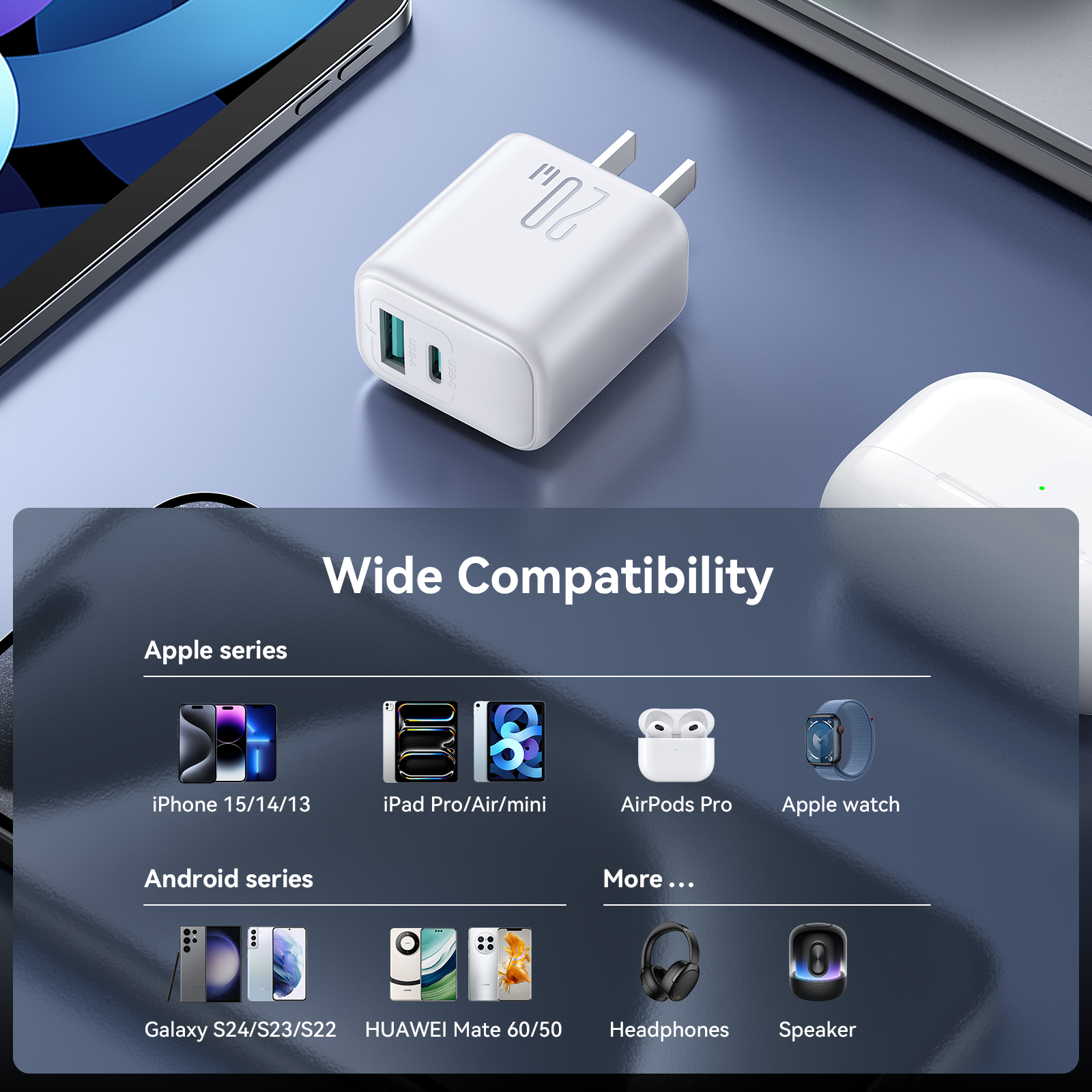 - Cóc sạc công suất 20W: Sạc nhanh chóng các thiết bị hỗ trợ sạc nhanh PD và QC3.0.