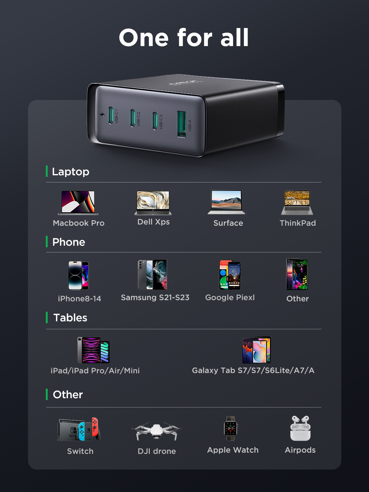 USB-C1+C2+C3+USB-A Output: 65W+45W+15W