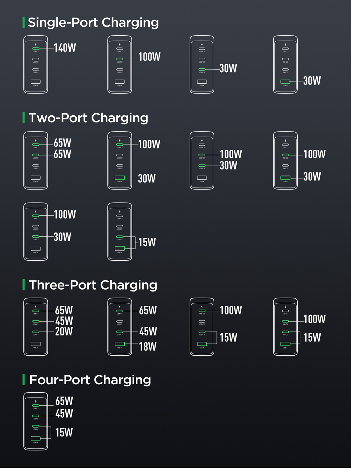 USB-C1/C2+C3/USB-A Output: 100W+30W
