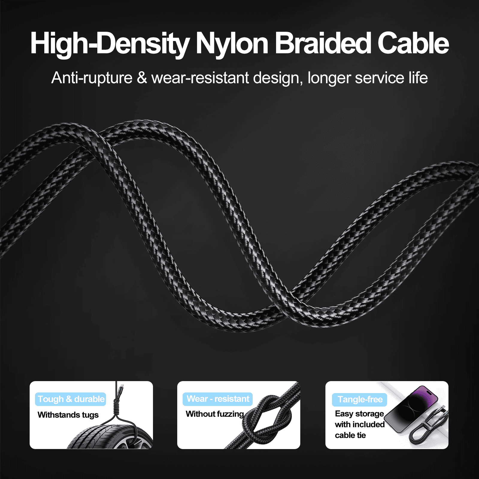- Vỏ bện nylon mật độ cao: Chống mài mòn, chống rối, chống đứt gãy, giúp dây sạc bền bỉ theo thời gian.
