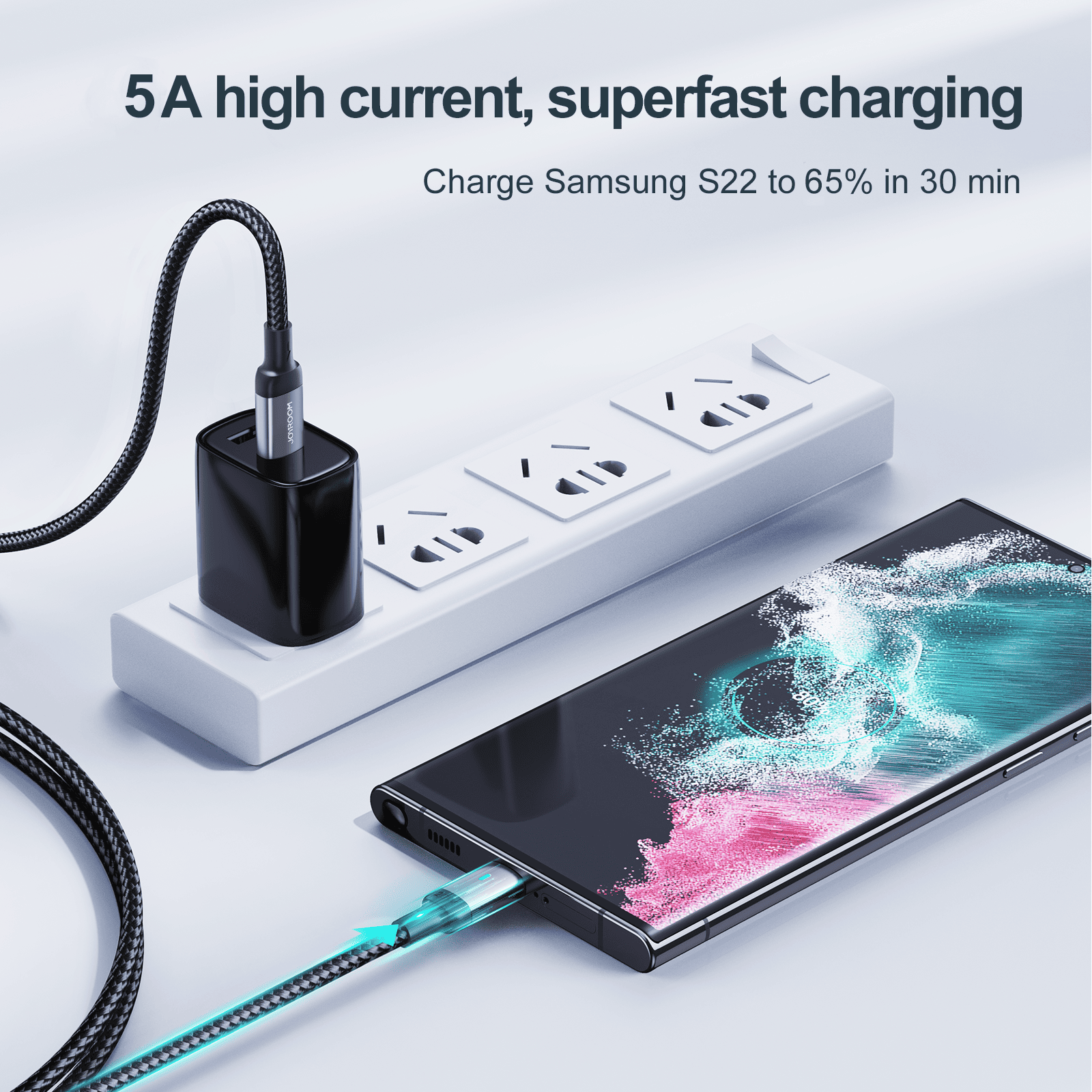 Điểm nổi bật nhất của Dây sạc Joyroom CC100A10 chính là khả năng sạc nhanh với công suất lên đến 100W. Đây là một con số ấn tượng, cho phép bạn sạc đầy pin cho các thiết bị như laptop, máy tính bảng chỉ trong một thời gian ngắn.