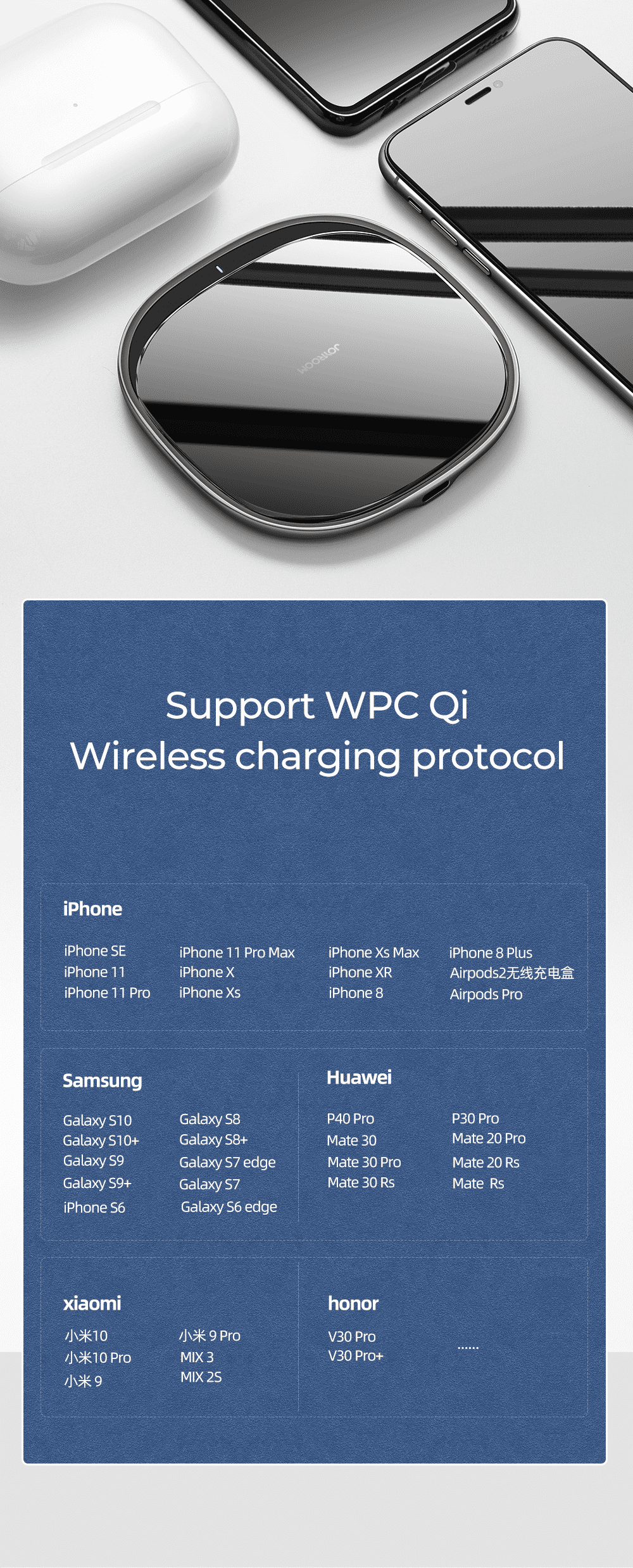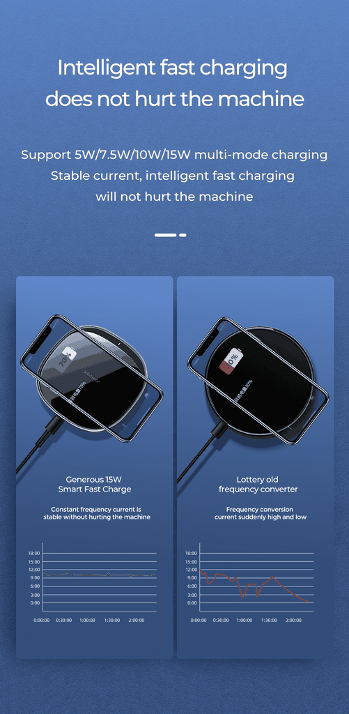 2. Hỗ trợ sạc đa chế độ 5W/7.5W/10W/15W, sạc nhanh thông minh & an toàn cho điện thoại.