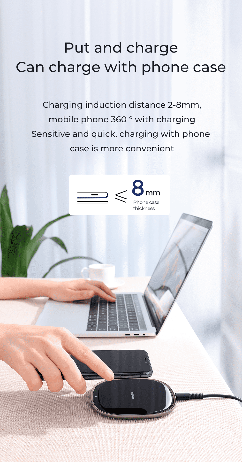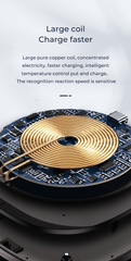3. Khoảng cách cảm ứng sạc là 2-8 mm và điện thoại di động có thể được sạc bất cứ lúc nào với 360 °. Cảm ứng nhạy và nhanh, có thể sạc bằng ốp điện thoại.