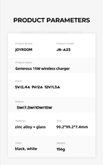 Đế sạc không dây Joyroom A23 Generous 15W là một sản phẩm đáng chú ý trong thế giới công nghệ hiện đại. Với thiết kế sang trọng và tinh tế, nó không chỉ là một phụ kiện hữu ích cho điện thoại di động và các thiết bị không dây khác, mà còn là một biểu tượng của sự thanh lịch và phong cách.
