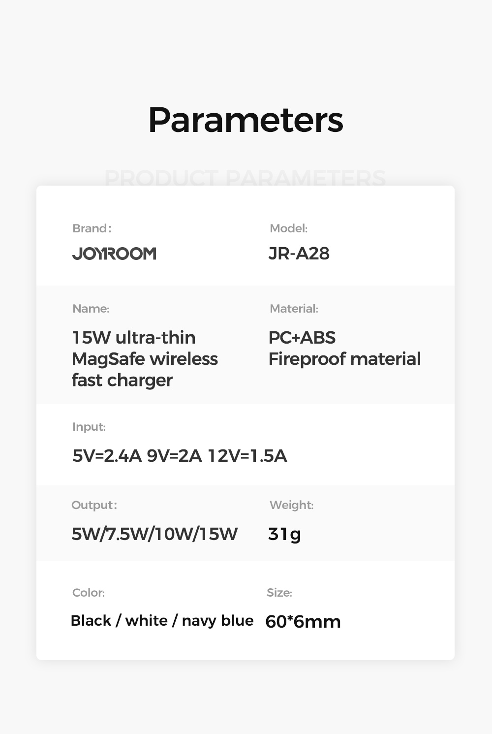 Đế sạc không dây Joyroom A28 15W ultra-thin magnetic wireless fast charger Black
