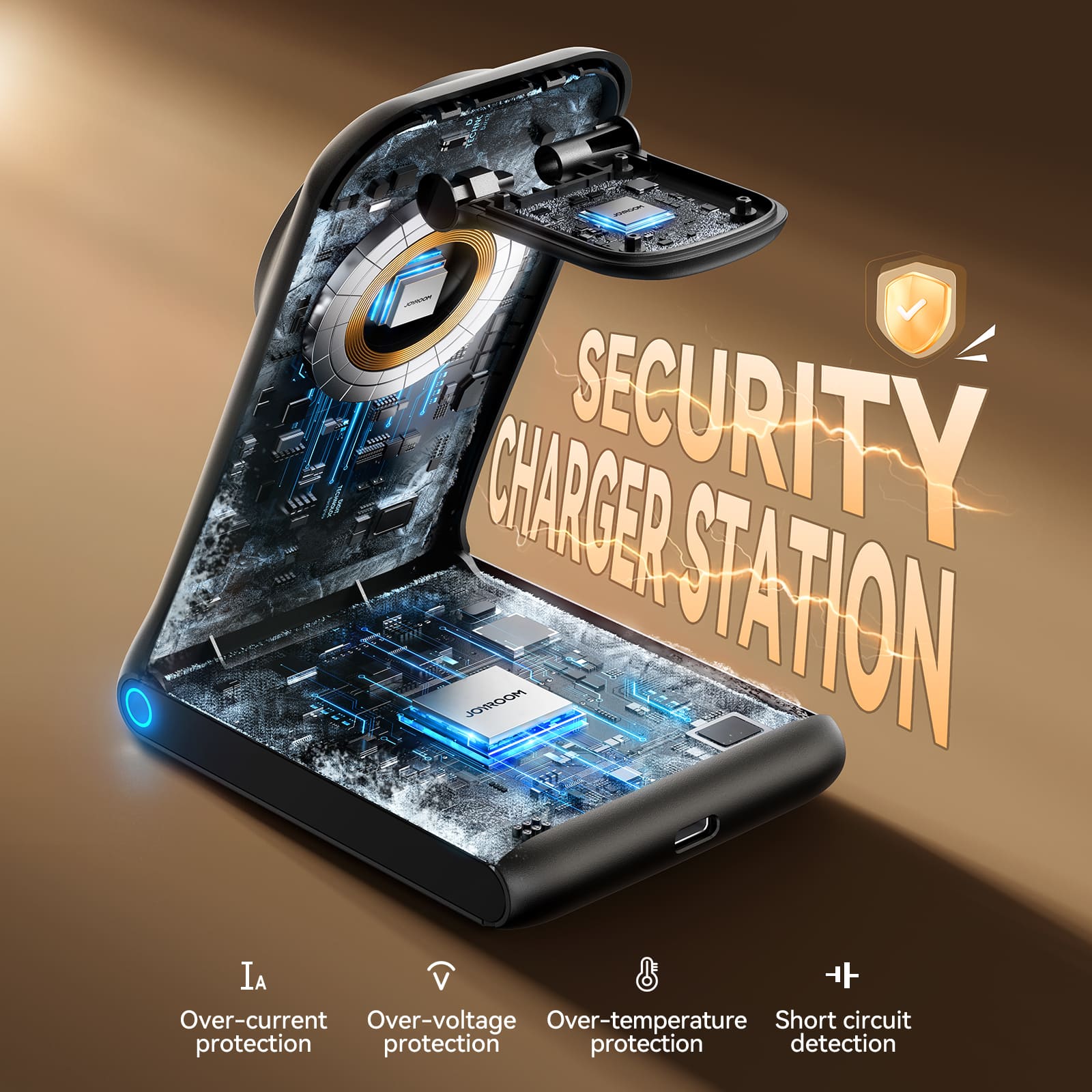 Đế sạc không dây Joyroom W15 Wireless Magnetic Charging Station 3-in-1 là một lựa chọn lý tưởng cho người dùng Apple. Sản phẩm này không chỉ giúp bạn sạc nhanh chóng và tiện lợi các thiết bị của mình mà còn là một phụ kiện trang trí đẹp mắt cho bàn làm việc.