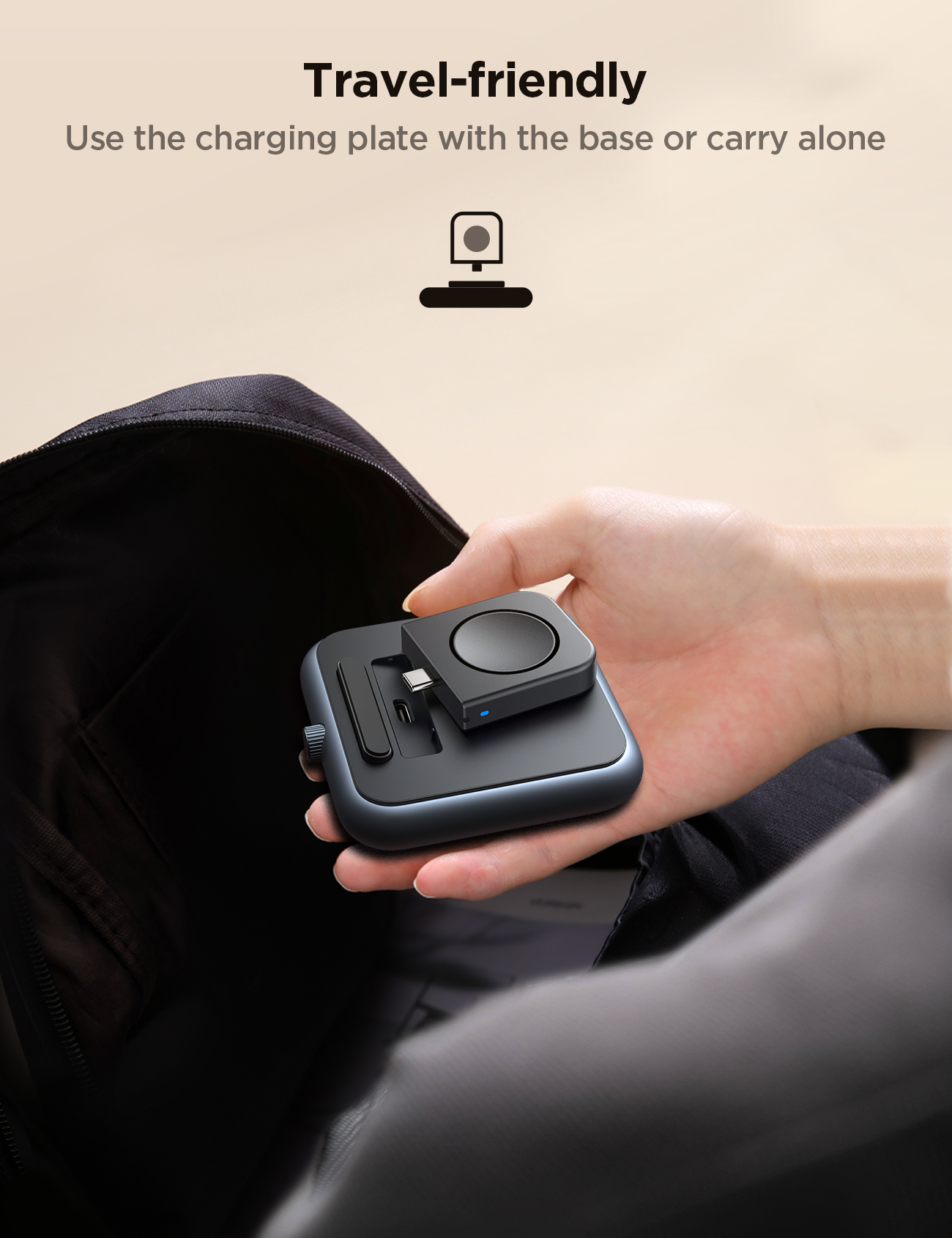 Kích thước nhỏ gọn của đế sạc, chính xác là 88.3*86*61.6mm, cho phép bạn dễ dàng mang theo và sạc đồng hồ bất cứ khi nào cần thiết. Điều này rất hữu ích khi bạn đang di chuyển hoặc trong các chuyến du lịch.