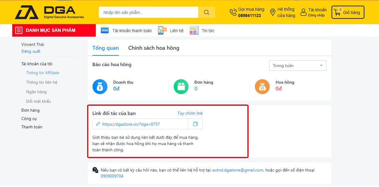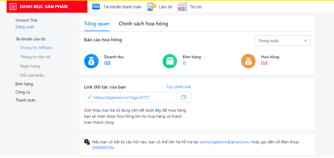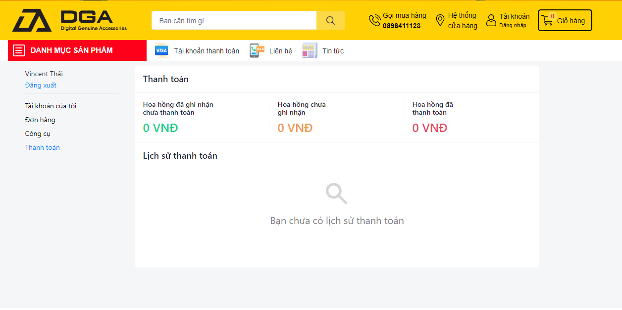 Ở trang thanh toán sẽ thấy Tổng hoa hồng chưa thanh toán - Hoa hồng ghi nhận - Hoa hồng đã thanh toán