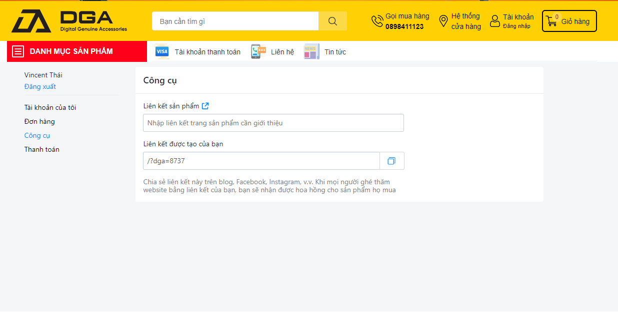 2. Tạo link sản phẩm chung vào trực tiếp tất cả sản phẩm của DGA . Mục tiêu độ phủ rộng