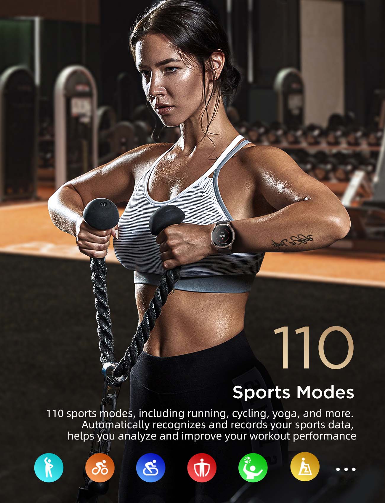 Hơn 110 môn thể thao: Đồng hồ này tích hợp hơn 110 chế độ thể thao, giúp bạn theo dõi và cải thiện sức khỏe một cách hiệu quả.