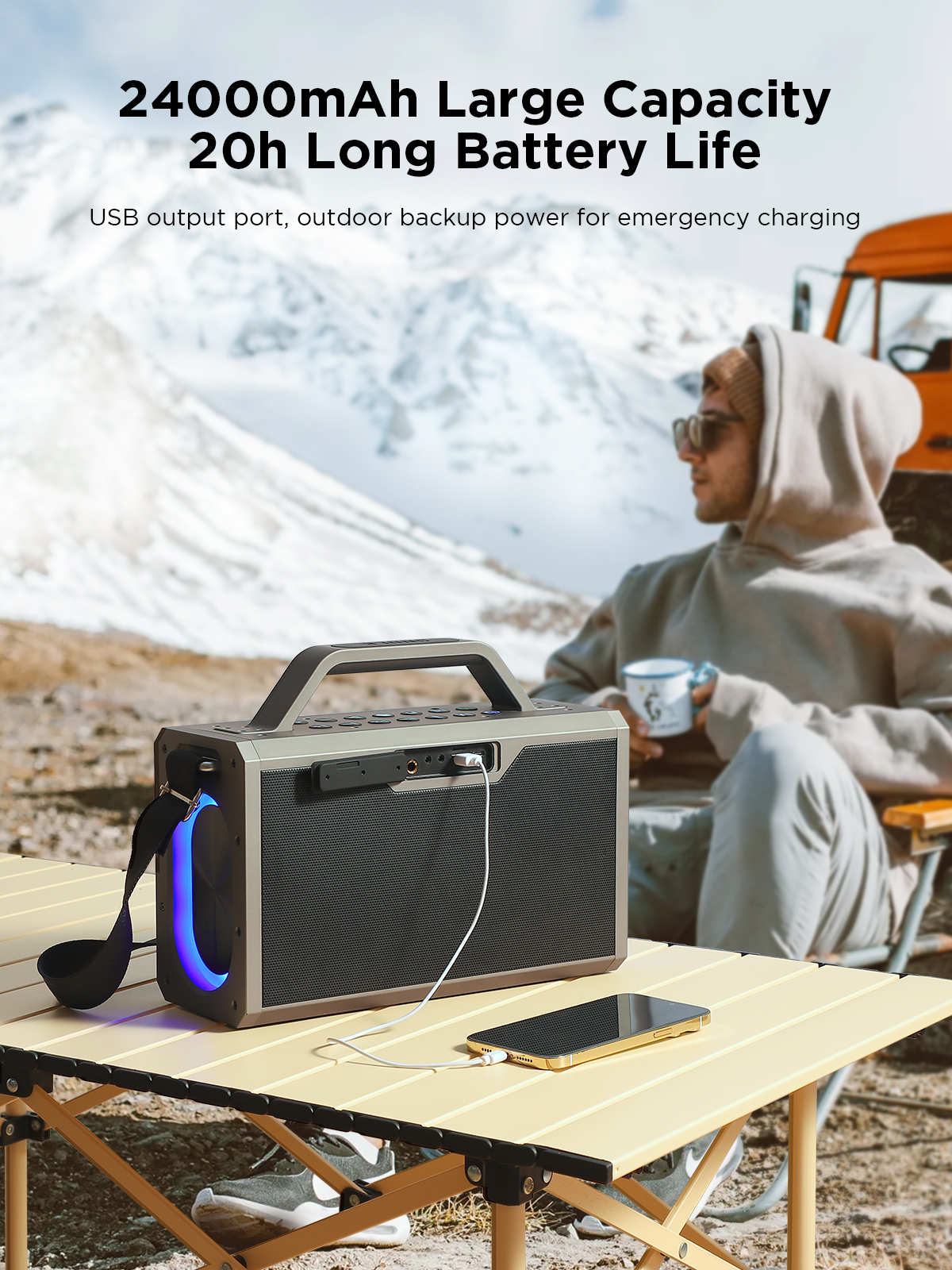 7. 24000mAh large capacity battery, outdoor backup power for emergency charging