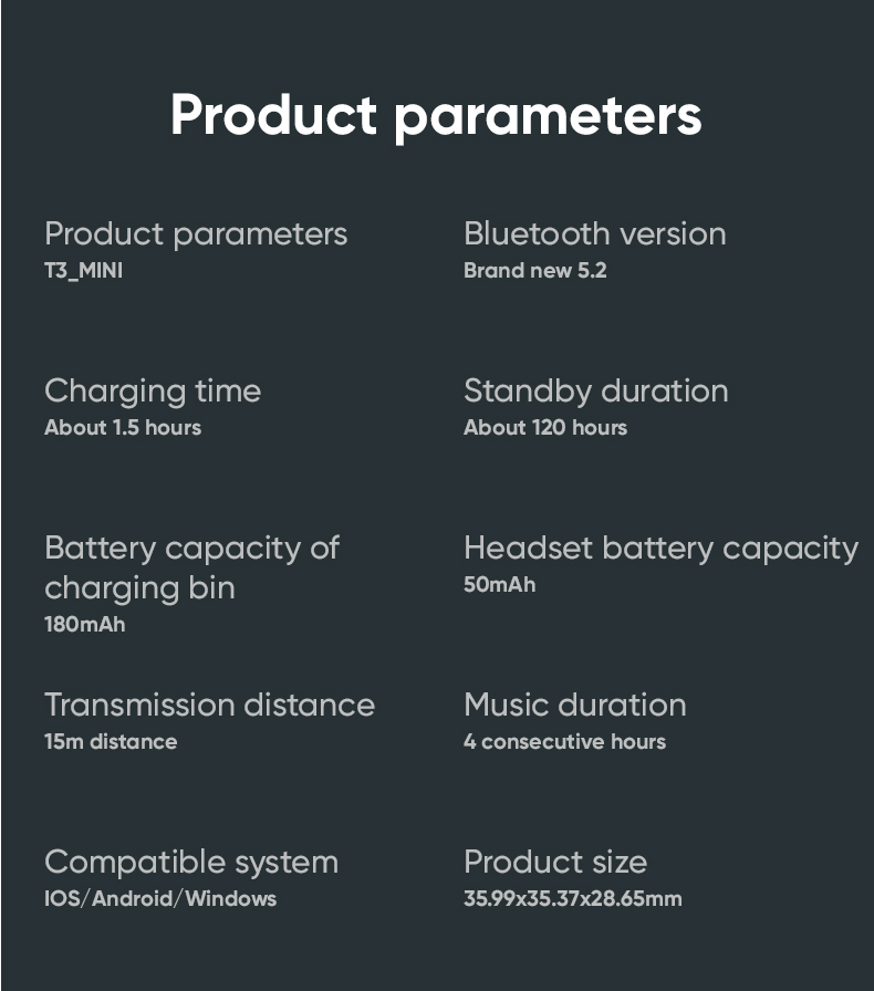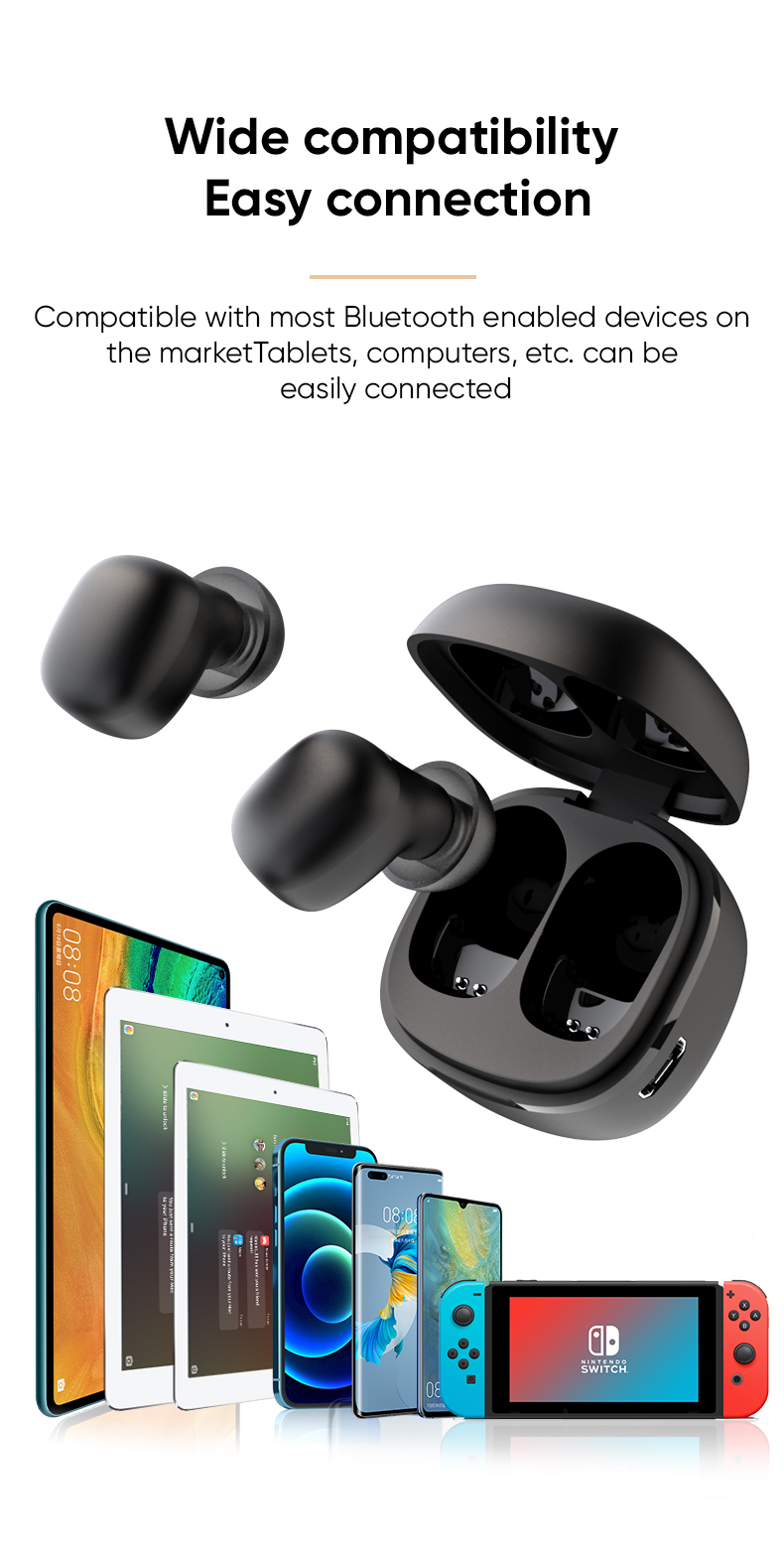 [Vỏ sạc dung lượng lớn 180mAh, thời lượng pin dài 5h]: Thời lượng pin 5h, đáp ứng nhu cầu hàng ngày. Tai nghe nhét tai 30mAh kèm hộp sạc 180mAh - có khả năng sạc đầy 2 lần cho tai nghe.
