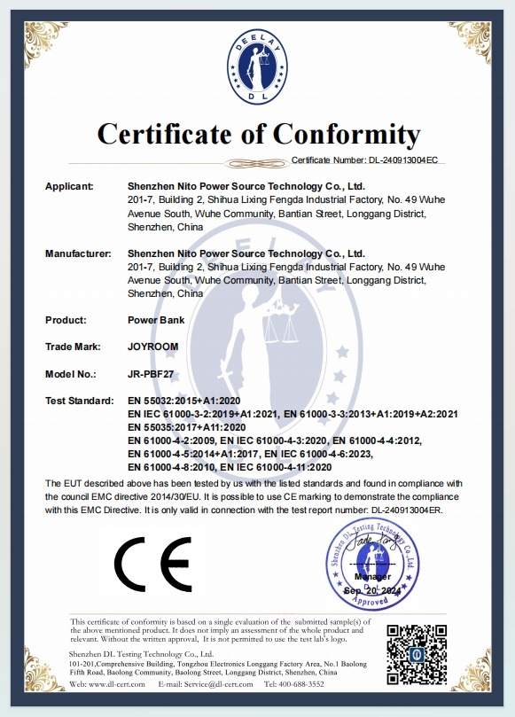 Sản phẩm pin sạc dự phòng Joyroom như PBF27, PBF12, PBM08, PR1 đều được thiết kế đạt đủ ba chứng nhận này; đồng thời còn có thêm các tiêu chuẩn RoHS, MSDS, chống cháy nổ, sạc nhanh thông minh Power Delivery và Quick Charge cho hiệu suất tối ưu.