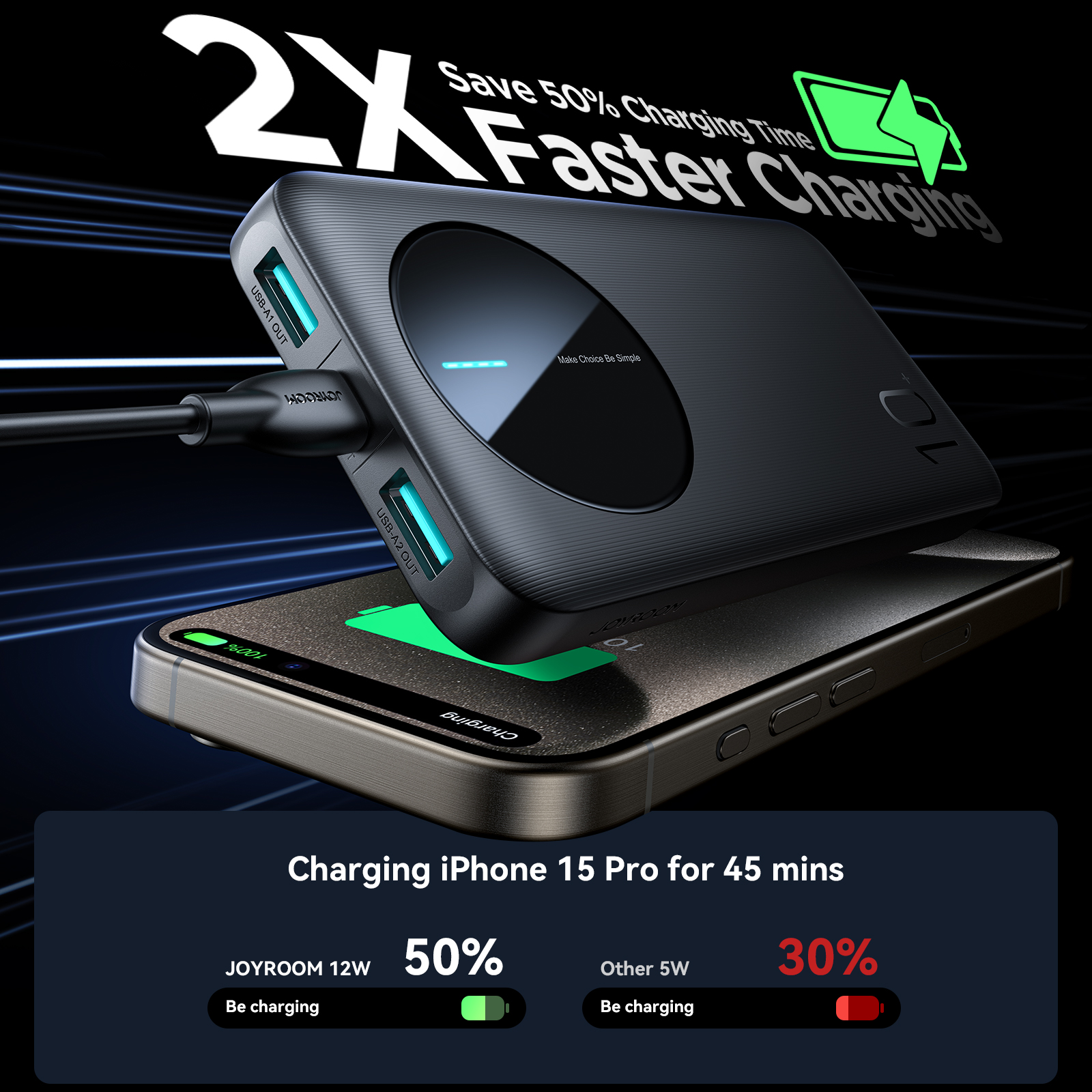 Joyroom PBF12 hỗ trợ sạc nhanh với dòng điện 2.4A, giúp bạn tiết kiệm thời gian sạc cho iPhone.