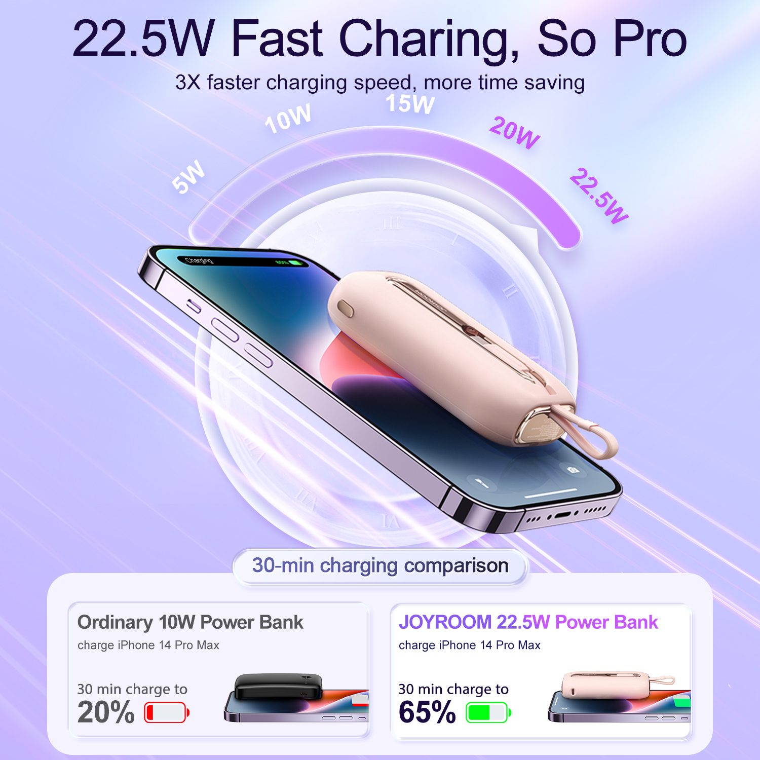 Sạc dự phòng 22.5W Joyroom L012 Colorful siêu nhỏ 10.000mAh tích hợp cáp sạc: Năng lượng di động cho mọi hành trình!
