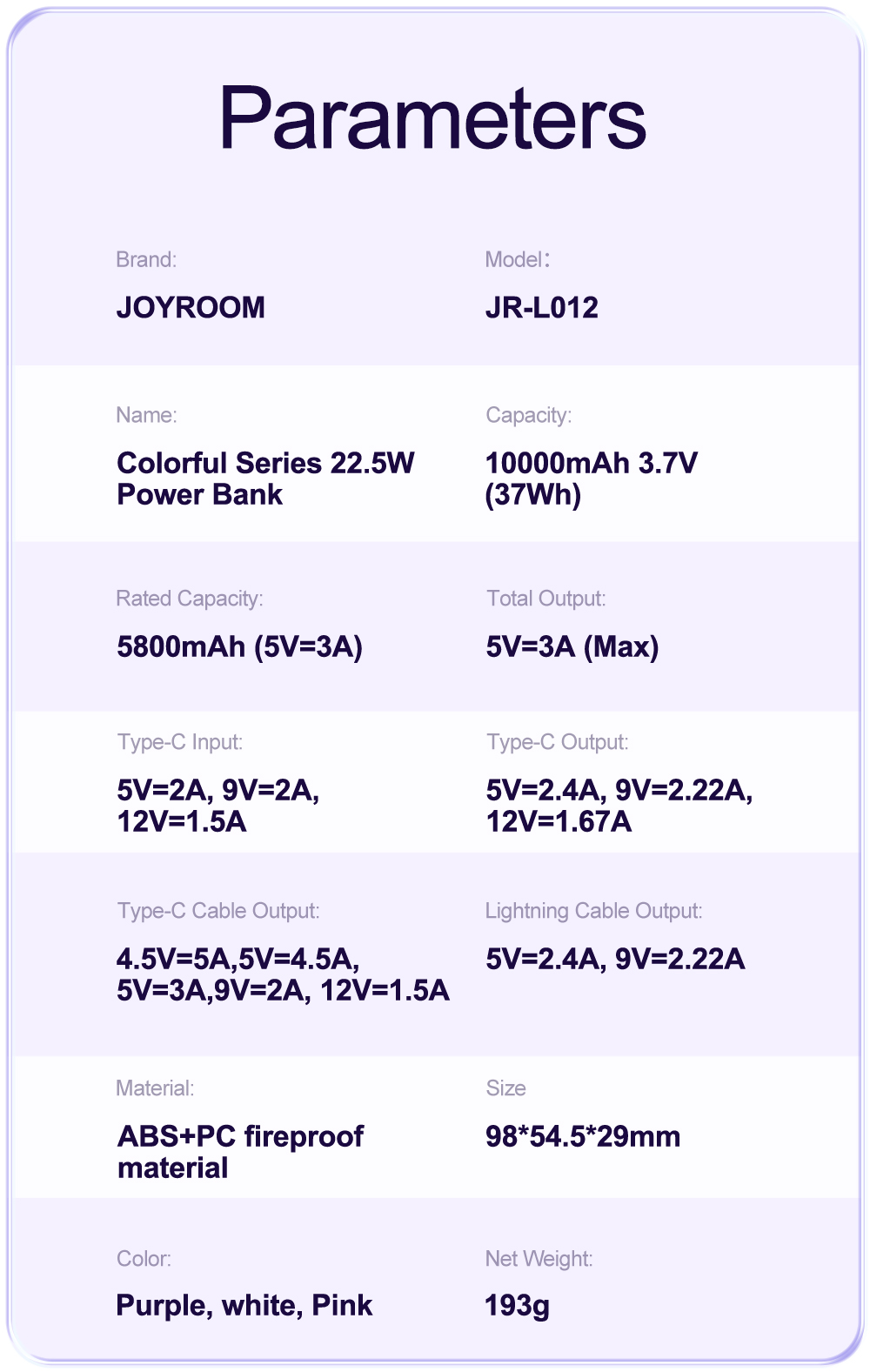 Pin Sạc dự phòng 22.5W Joyroom L012 Colorful là sự lựa chọn hoàn hảo cho những ai đang tìm kiếm một pin sạc dự phòng nhỏ gọn, tiện lợi, sạc nhanh và an toàn.