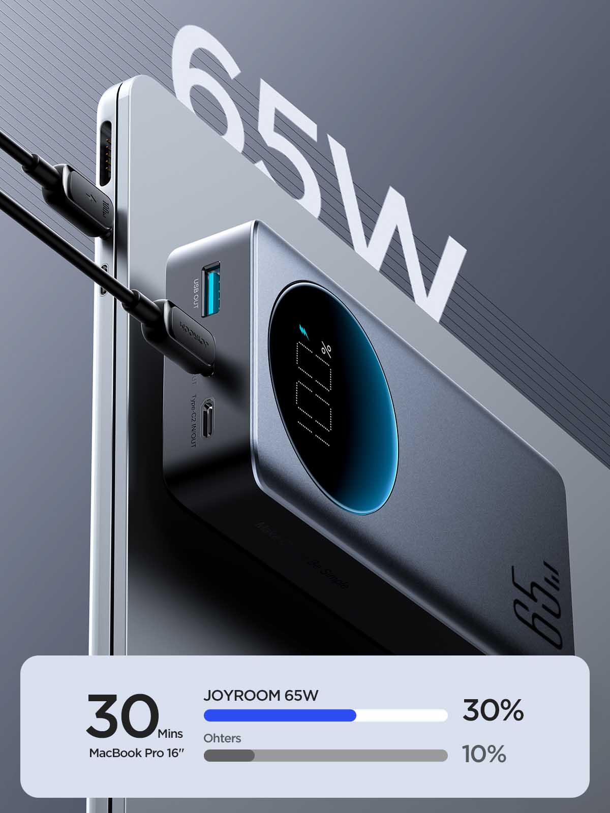 Sạc dự phòng 65w Joyroom PBF04 là một lựa chọn tuyệt vời cho những ai cần sạc nhanh và tiện lợi cho các thiết bị di động của mình. Với khả năng sạc được cả Laptop, bạn sẽ không cần lo lắng về việc hết pin khi làm việc di động hoặc du lịch.