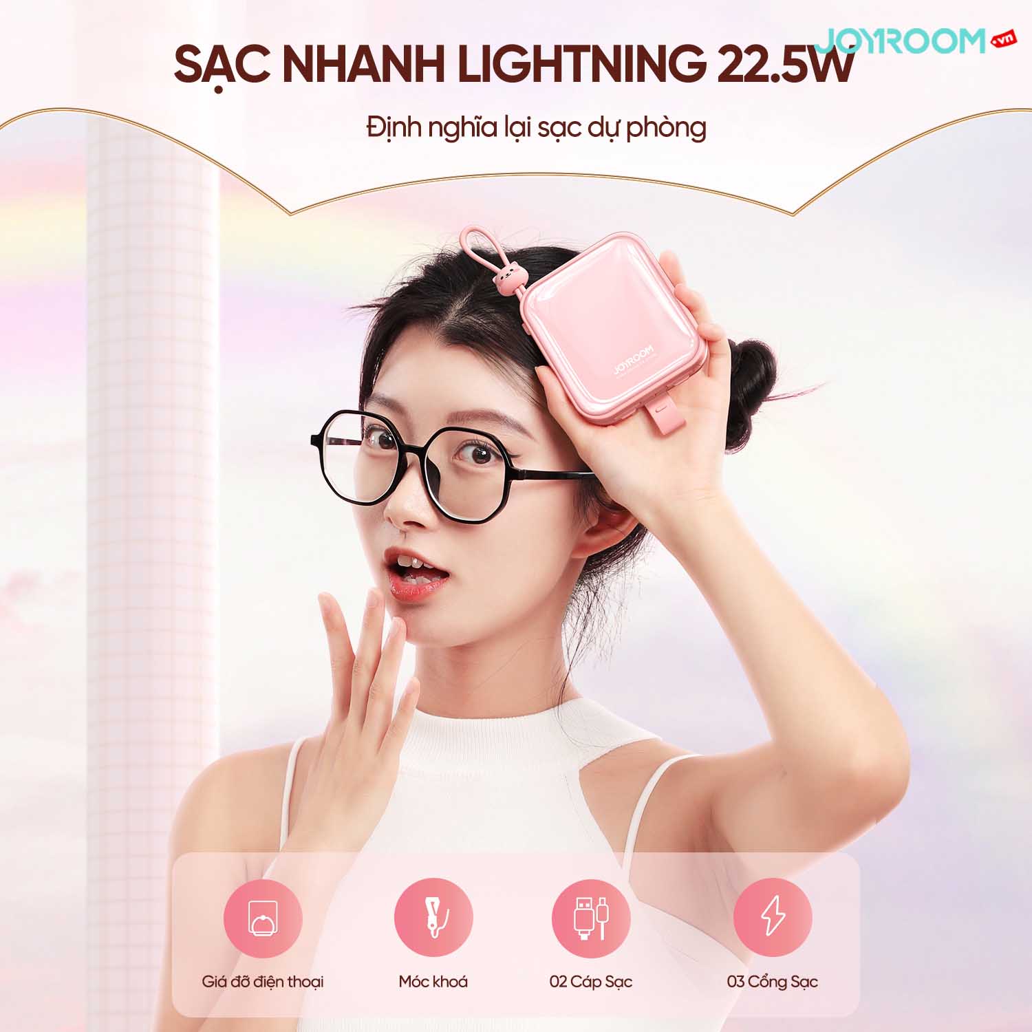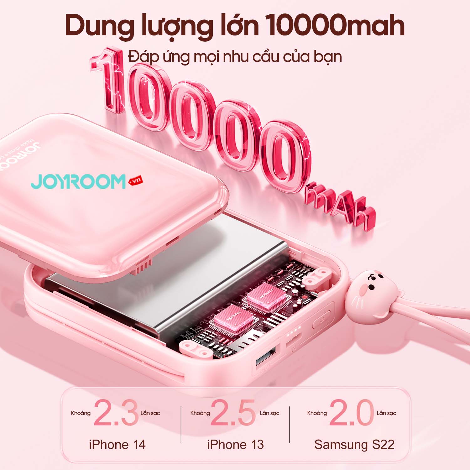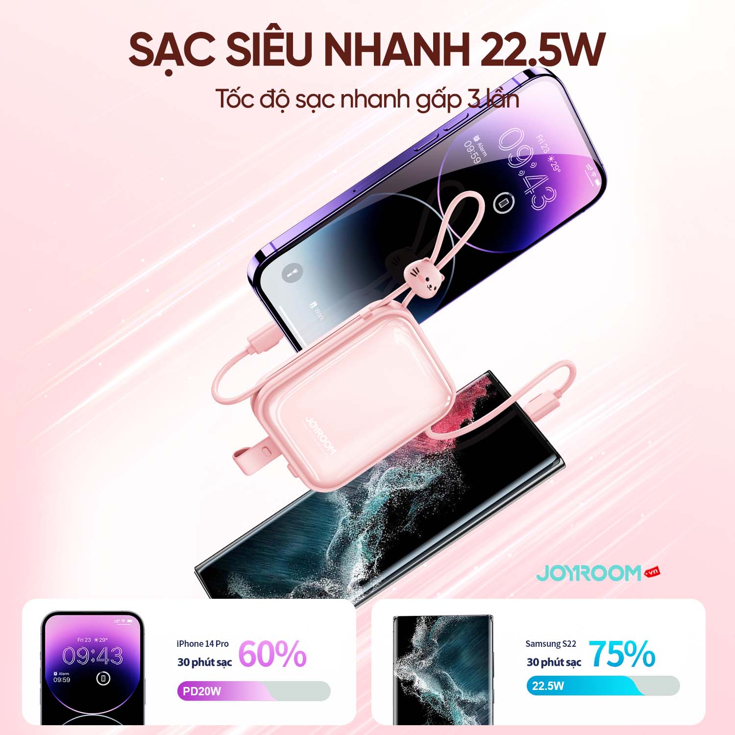 Sạc dự phòng Joyroom Jelly Series 22.5W Power Bank 10000mAh tích hợp 2 dây sạc USBC + iPhone