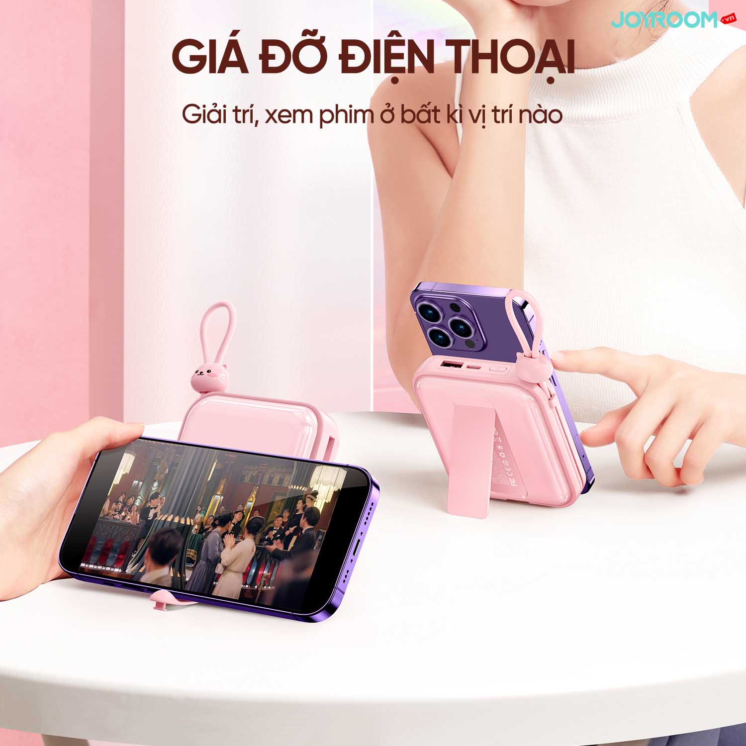 Thiết kế của Joyroom Jelly Series 22.5W Power Bank rất nhỏ gọn và dễ dàng mang đi bất cứ đâu. Trang bị giá đỡ cho điện thoại đi kèm rất tiện lợi