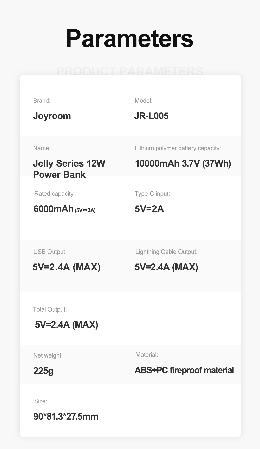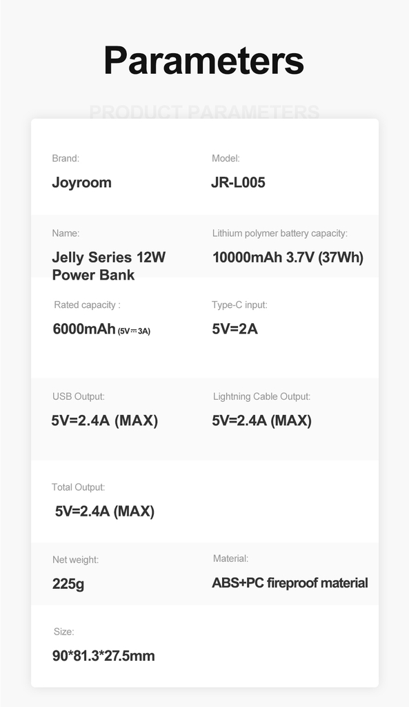 Ngoài ra, với công nghệ sạc nhanh 12W, sạc dự phòng Joyroom Jelly Series giúp bạn tiết kiệm thời gian và nhanh chóng khắc phục nhu cầu sạc của iPhone. Bạn sẽ không phải chờ đợi lâu để có thể sử dụng lại thiết bị của mình