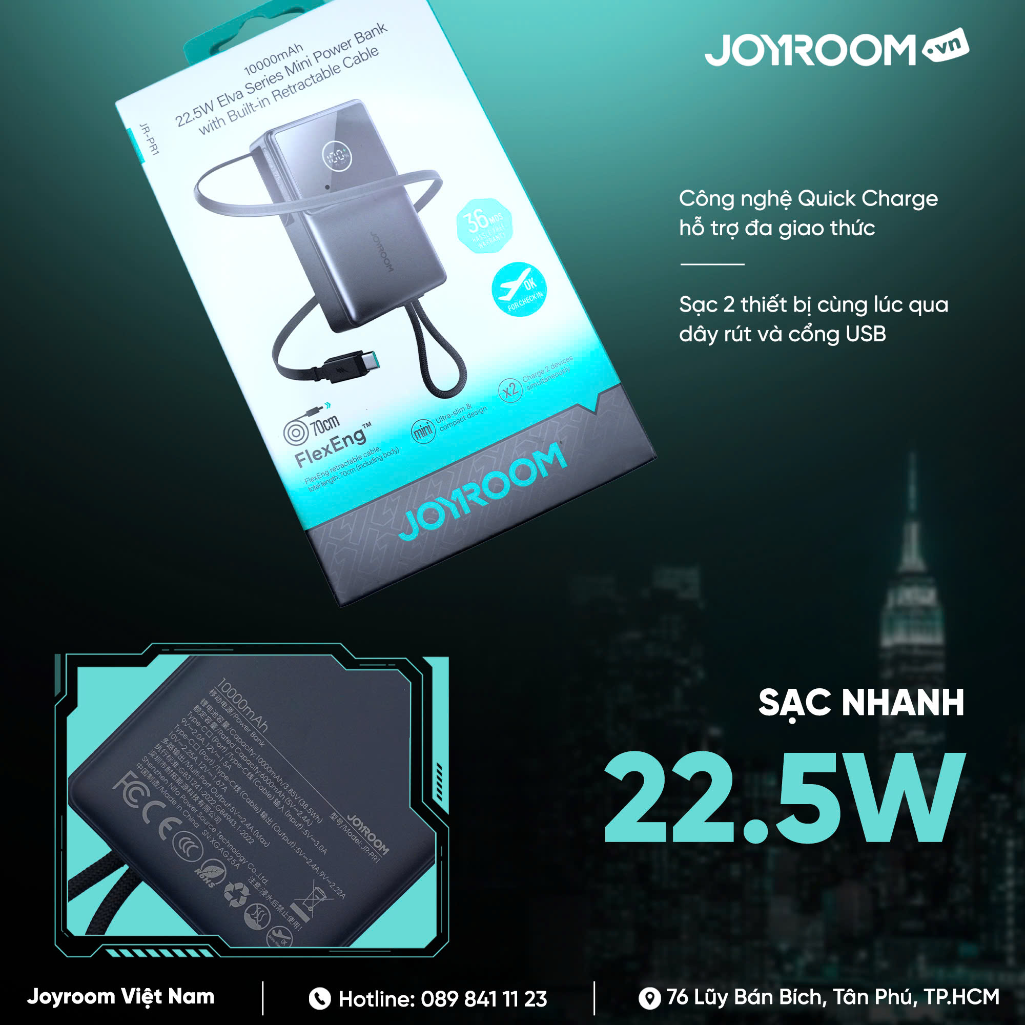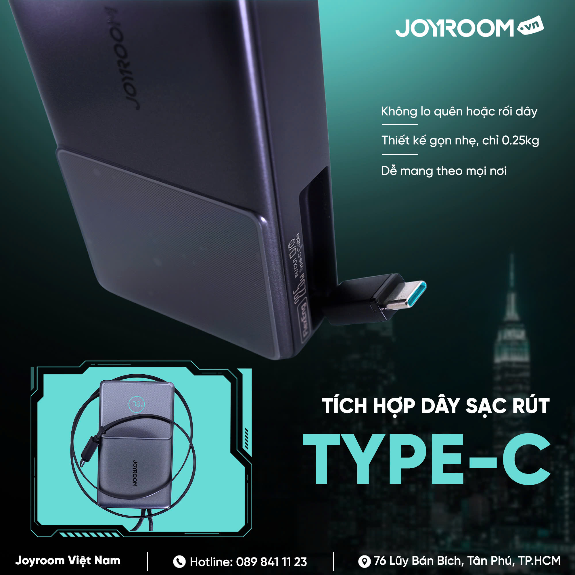 - Sẵn sàng sạc mọi lúc: Không còn lo lắng về việc quên dây sạc khi ra ngoài, Joyroom PR1 luôn sẵn sàng cung cấp năng lượng cho thiết bị của bạn.