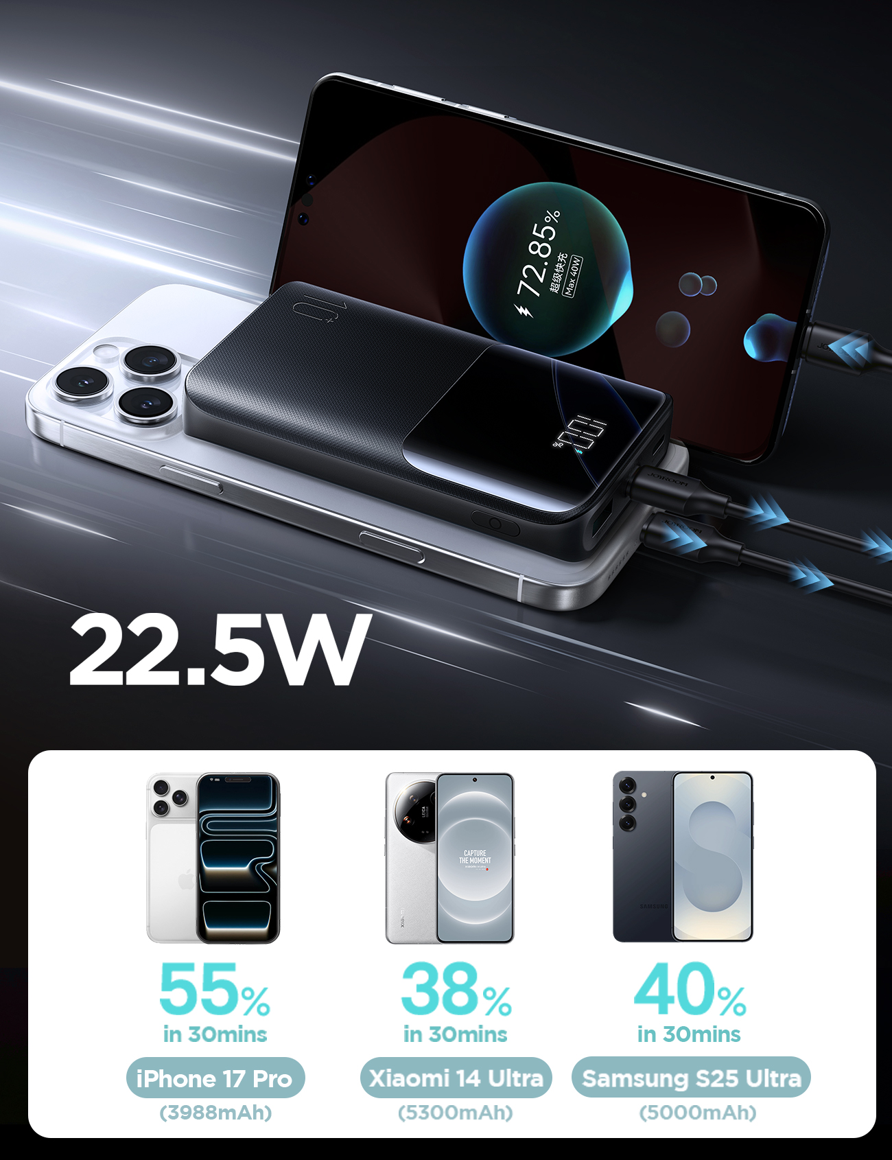 Hỗ trợ sạc nhanh đa giao thức, tối ưu cho iPhone & Samsung