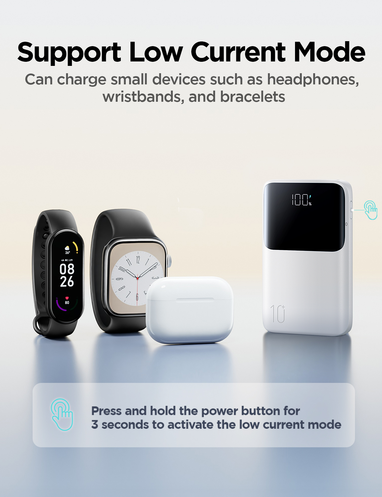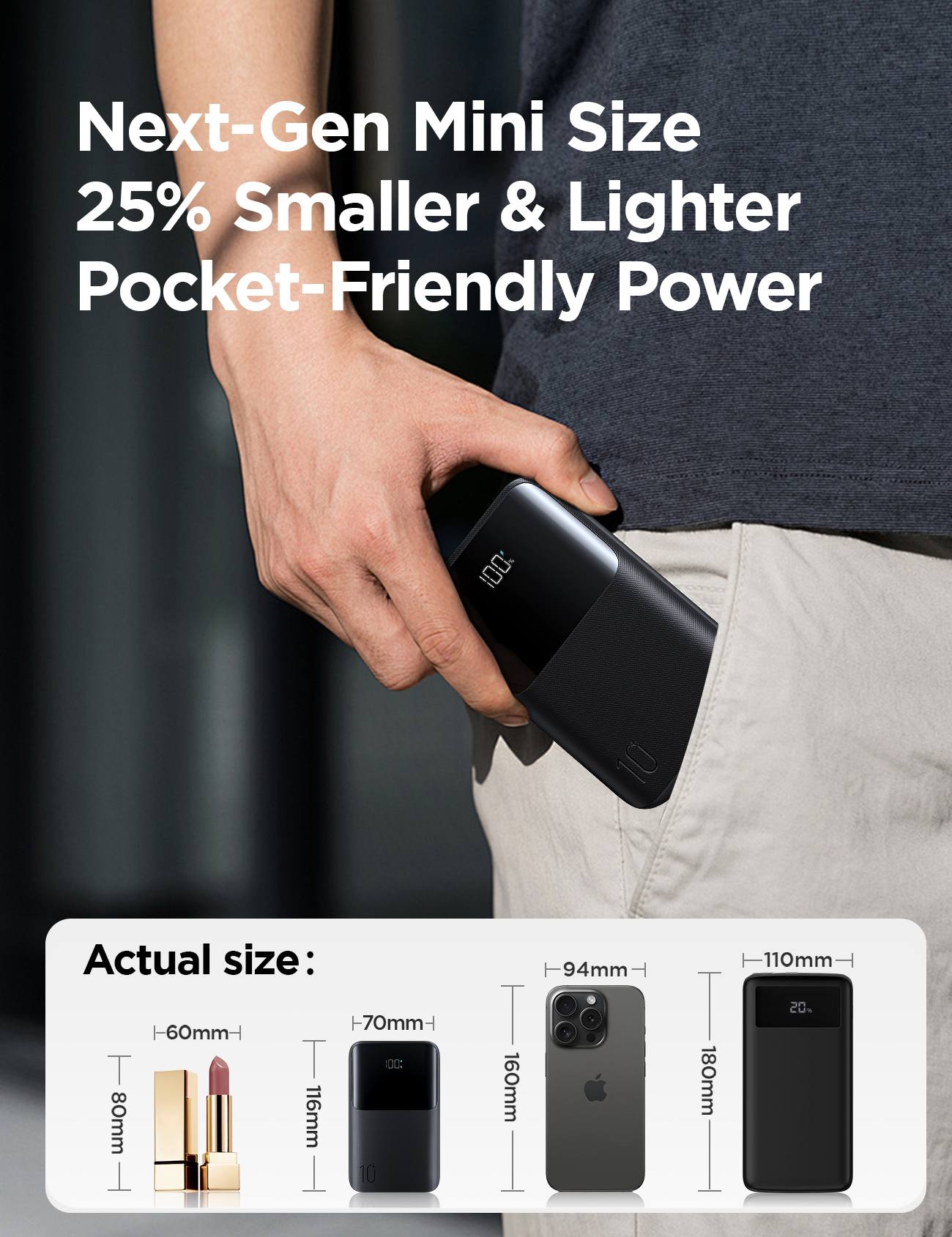 Joyroom QP191 Mini Star được tối ưu theo xu hướng “mini nhưng mạnh”, kích thước nhỏ gọn giúp dễ dàng bỏ túi quần, túi xách, clutch hay balo mà không chiếm diện tích, rất hợp với người dùng hay di chuyển, du lịch hoặc dân văn phòng cần mang theo hằng ngày. Phiên bản Mini Star có hai màu trắng và đen, bề mặt nhựa ABS + PC chống cháy, hoàn thiện mịn, hiện đại, phù hợp nhiều phong cách từ tối giản đến trẻ trung. Thiết kế bo góc mềm, cầm chắc tay, hạn chế trầy xước cho cả pin và thiết bị.