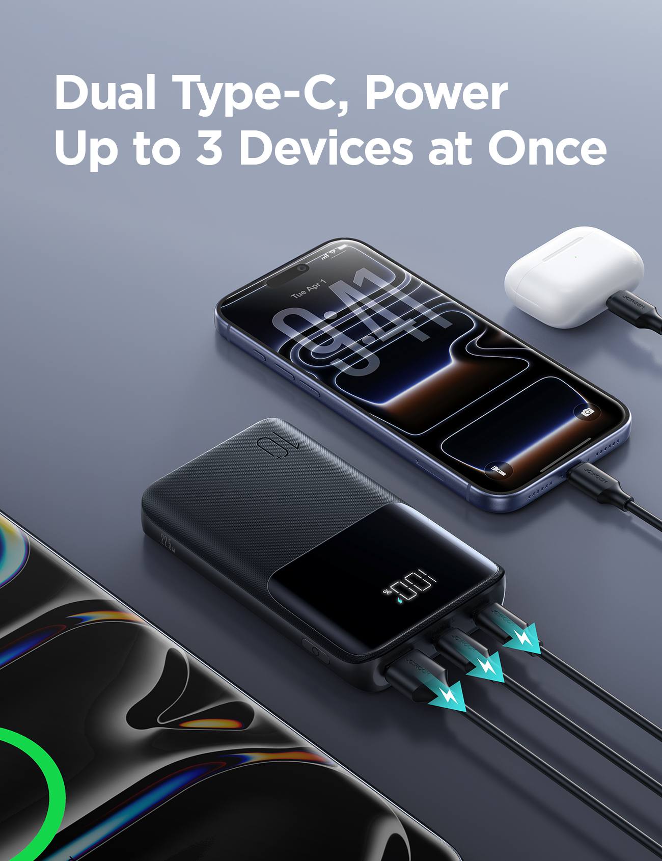 Joyroom QP191 Mini Star là lựa chọn pin dự phòng 10.000mAh lý tưởng cho người dùng cần thiết kế siêu nhỏ – cổng sạc đa dạng – sạc nhanh nhiều chuẩn – an toàn chuẩn quốc tế. Hai tông màu trắng/đen dễ dùng, cấu hình 2 Type-C + 1 USB-A linh hoạt và chứng nhận CCC-FCC-CE giúp sản phẩm nổi bật rõ rệt so với các mẫu giá rẻ không rõ nguồn gốc.