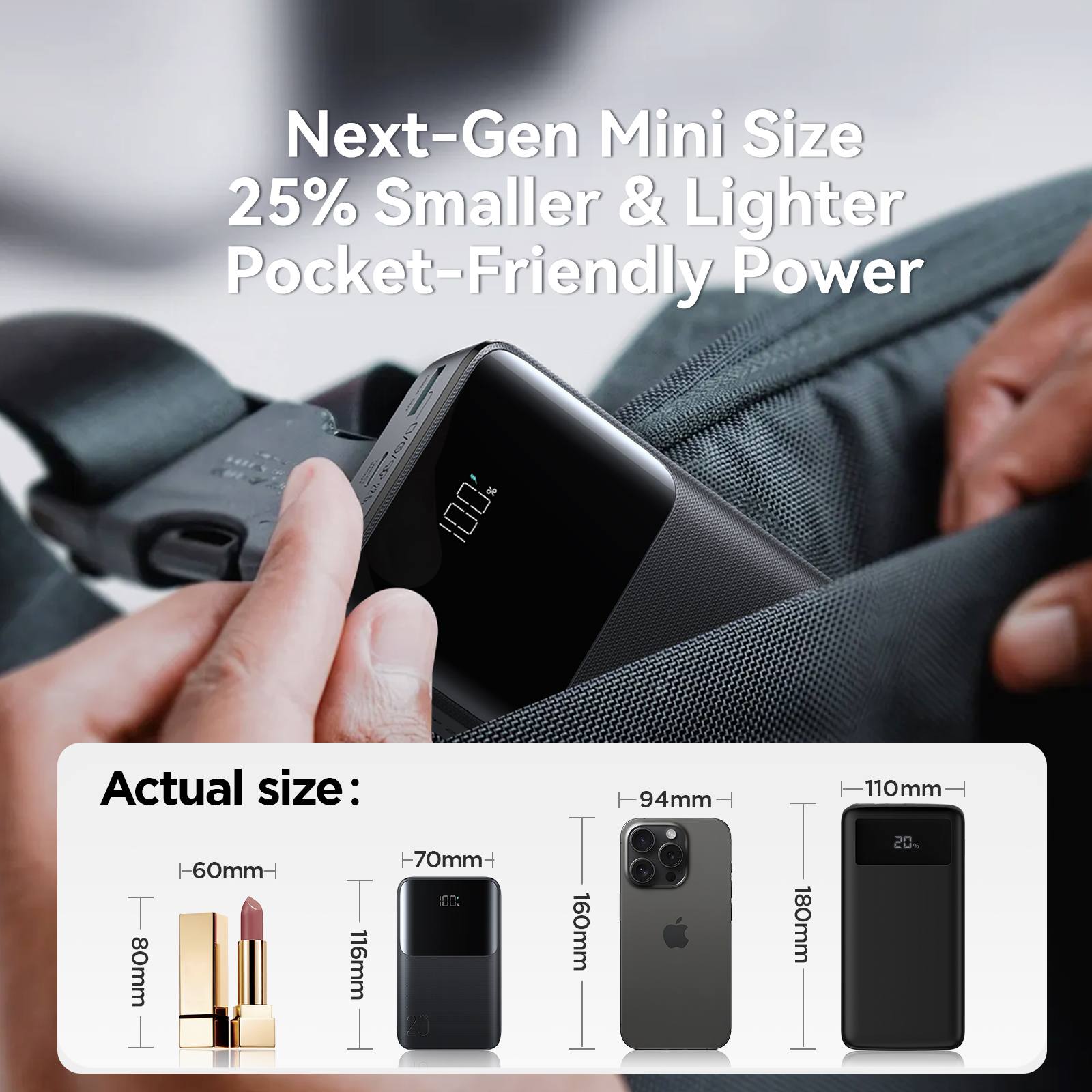 Joyroom JR-QP192 Mini Star được tối ưu với triết lý “dung lượng lớn – thân máy nhỏ”, giúp bạn có thể mang theo viên pin 20.000mAh mà không cồng kềnh. Vỏ ngoài sử dụng nhựa ABS + PC chống cháy, bề mặt hoàn thiện mịn, chống bám vân tay, các cạnh bo tròn cho cảm giác cầm nắm thoải mái. Thiết kế tối giản nhưng hiện đại, thích hợp cho cả môi trường văn phòng lẫn những chuyến du lịch, công tác dài ngày. Trên mặt trước là màn hình kỹ thuật số lớn dạng smart digital display, hiển thị rõ ràng phần trăm pin còn lại, trạng thái sạc/xả, giúp bạn kiểm soát năng lượng chỉ trong một lần liếc nhìn.