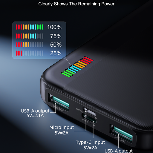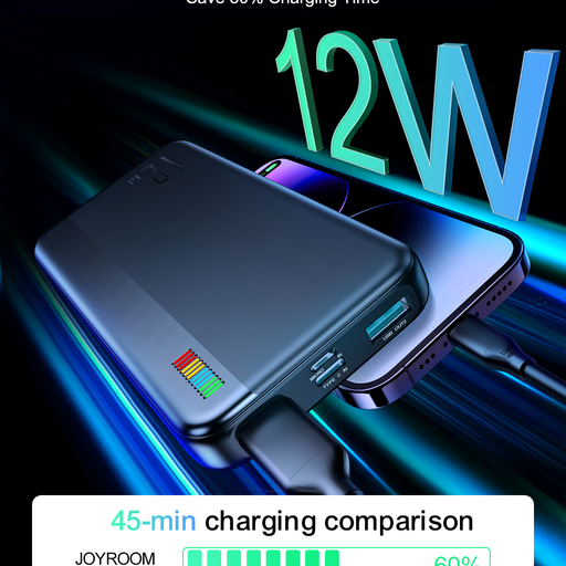 Với công suất 12W, Joyroom T016 Dazzling Series Power Bank không chỉ nhanh chóng sạc đầy pin cho điện thoại di động, máy tính bảng, đồng thời còn giúp kéo dài thời gian sử dụng của thiết bị. Bạn có thể hoàn toàn yên tâm khi sử dụng các ứng dụng nặng như chơi game, xem phim hay làm việc trên di động mà không lo hết pin giữa chừng.