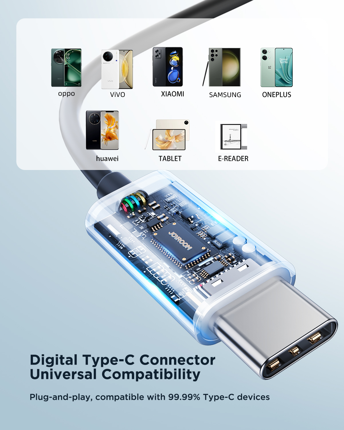 Với cổng Type C, tai nghe Joyroom EC07 đảm bảo kết nối mạnh mẽ và ổn định với các thiết bị tương thích. Bạn có thể tận hưởng âm nhạc mà không bị gián đoạn hay mất kết nối.