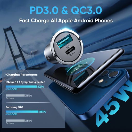 Tẩu sạc nhanh Joyroom A35 45W Mini 2 cổng sạc ring-pull fast car charger
