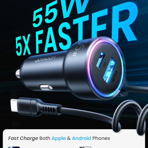 2. Tẩu sạc ô tô Joyroom có các giao thức sạc nhanh được hỗ trợ bao gồm PD3.0, QC3.0, PPS, Samsung AFC, HUAWEI FCP.