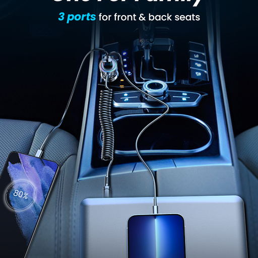 1. Sạc ô tô có dây USB-C, công suất lớn 60W, có khả năng sạc cùng lúc cho 3 thiết bị.