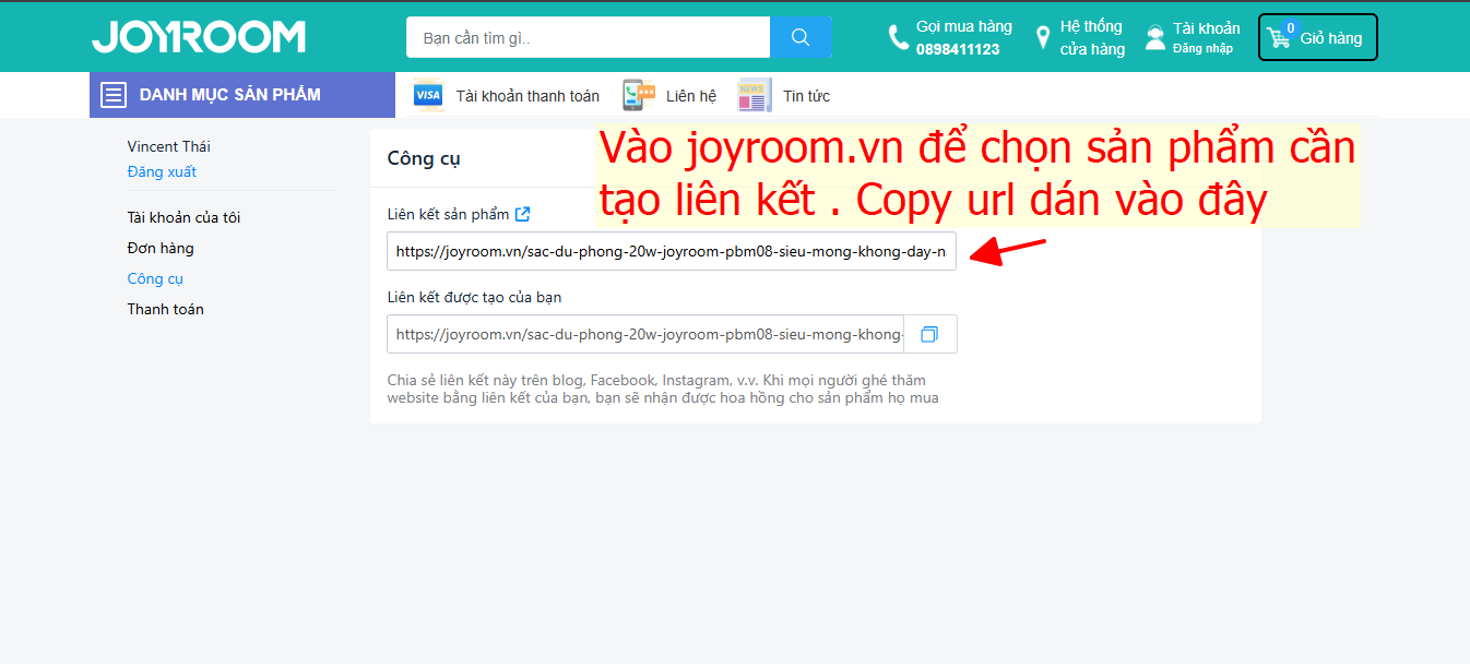 Truy cập vào : https://joyroom.vn/apps/affiliate-v2